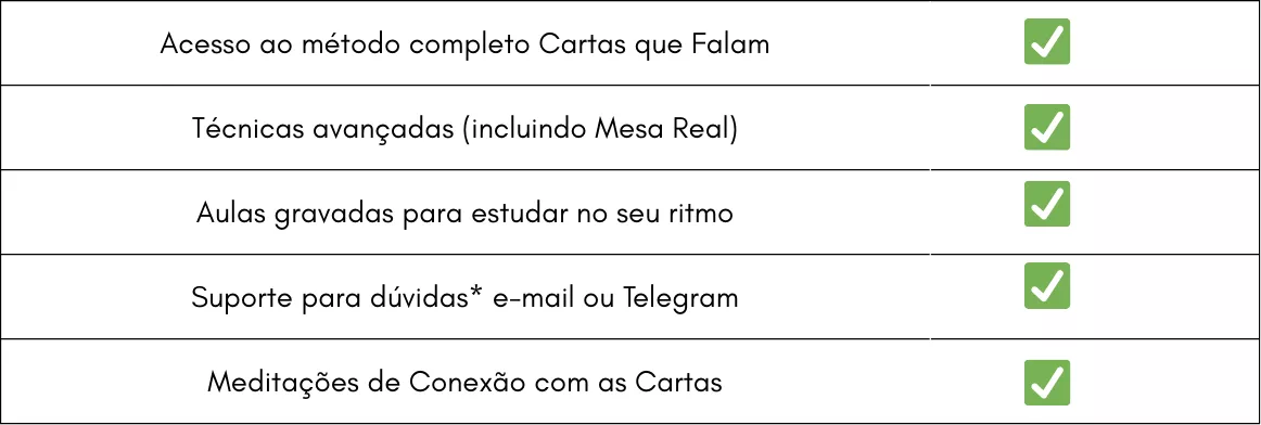 Sim! Você vai ter conhecimento detalhado sobre as cartas e as técnicas, tornando suas leituras mais precisas e conectadas com cada situação.